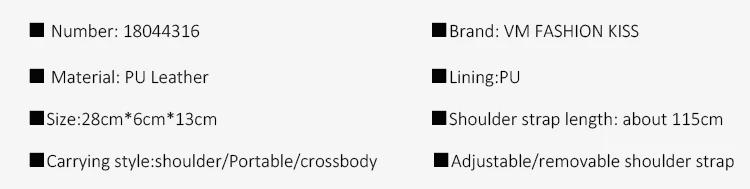 Welcome to VM FASHION KISS Store!!! Add the shopping cart first and have it earlier. Collection this store Can be in Limited time limit activity Customers' Benifits are the Core of our Business Model. We Provides Worldwide Latest Fashion Bag, Mainly To Young Fashion Women, Men. Meanwhile we have the powerful supply chains system. Welcome to visit our shop. If there is any problems, Feel free to contact with us! Thanks!!! Please contact us if you have any other question about |