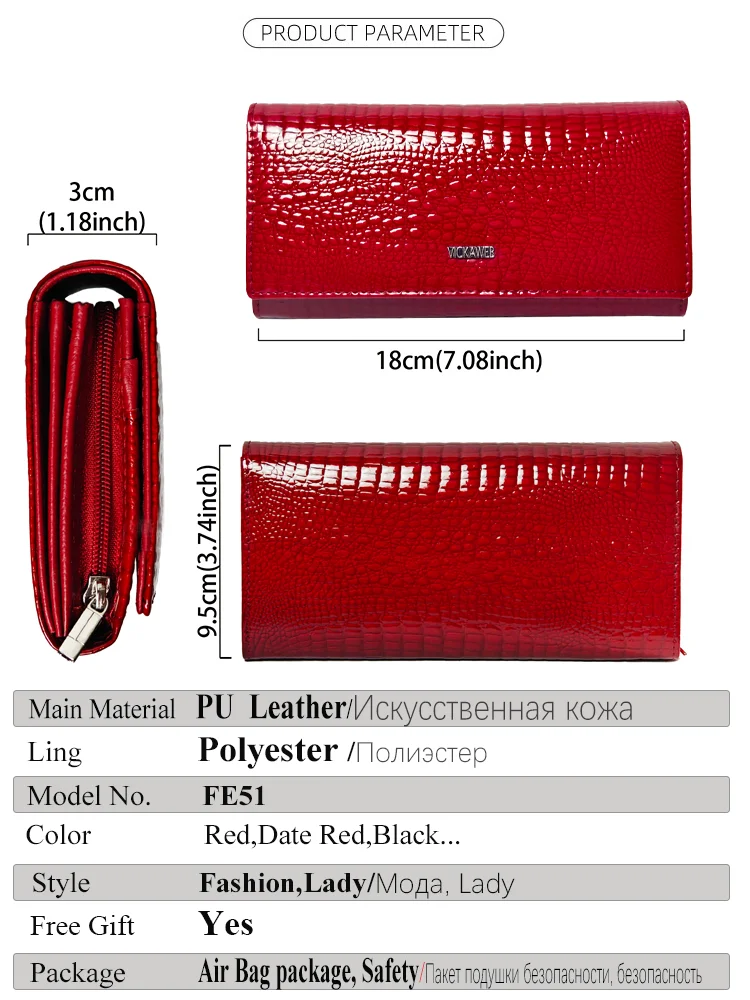 Free Gift Ladies Wallet for Women Fashion Patent Leather Clutch Long Purses Card Holder Carteras Para Mujer Monederos Para Mujer